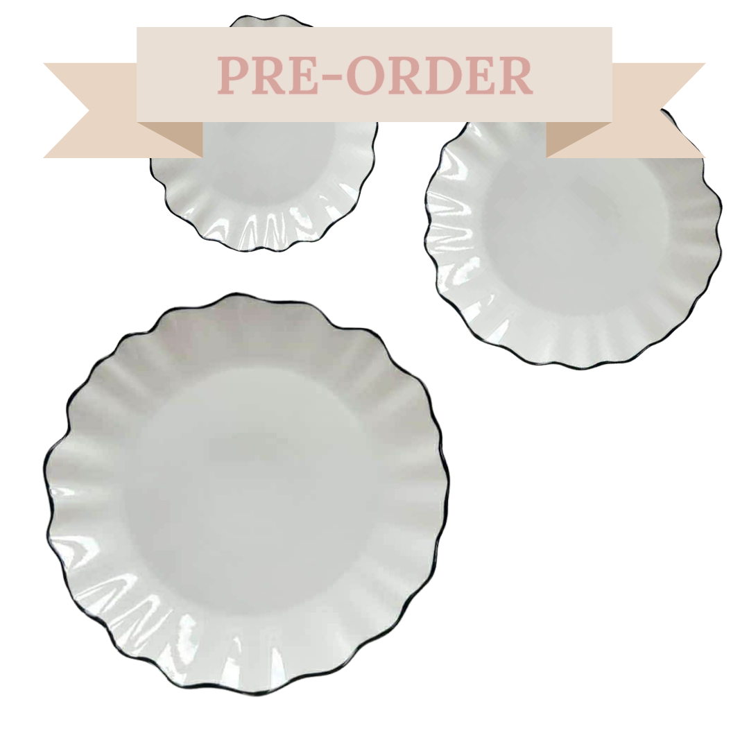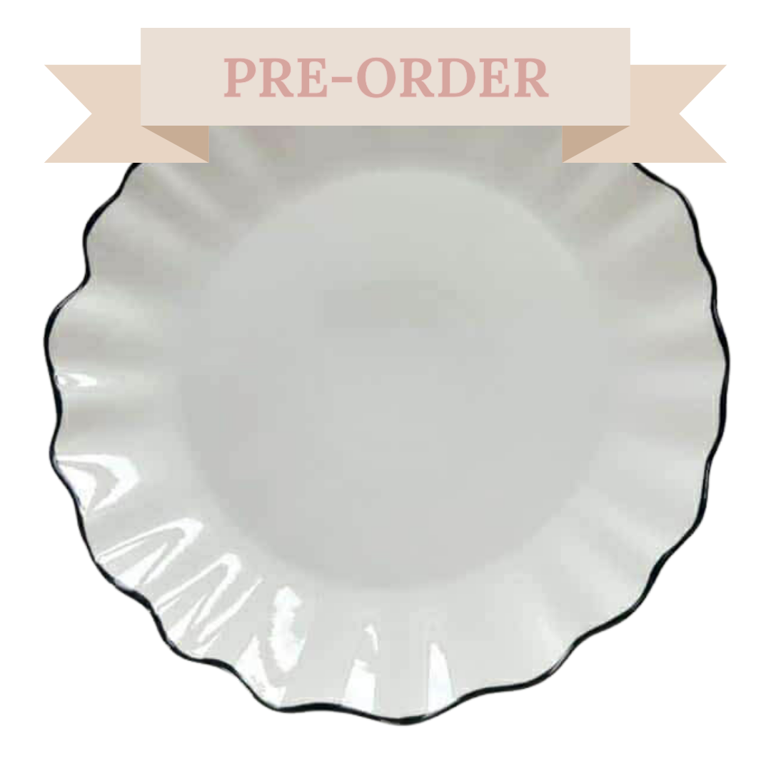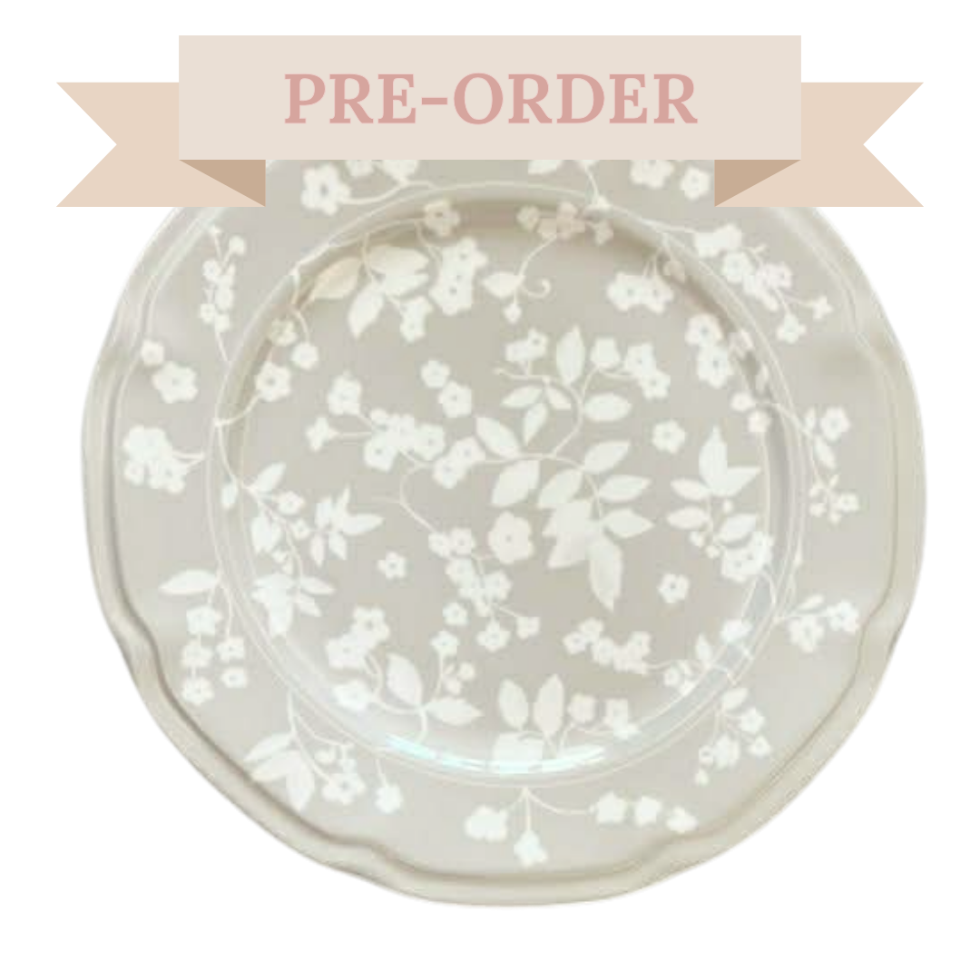 Description: Hand-pressed by artisans in Italy, these beautifully detailed cream plates add a level of sophistication to any tablescape.
